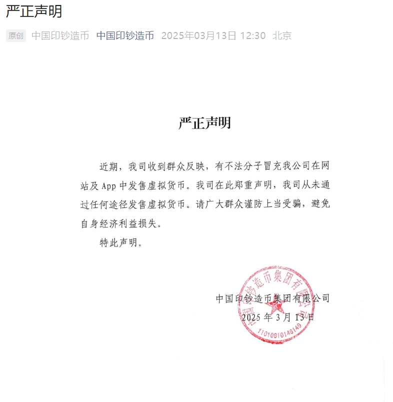 中国印钞造币集团:从未通过任何途径发售虚拟货币投牛策略中国印钞造币集团:从未通过任何途径发售虚拟货币